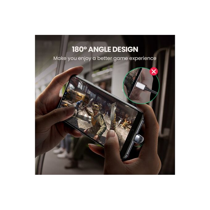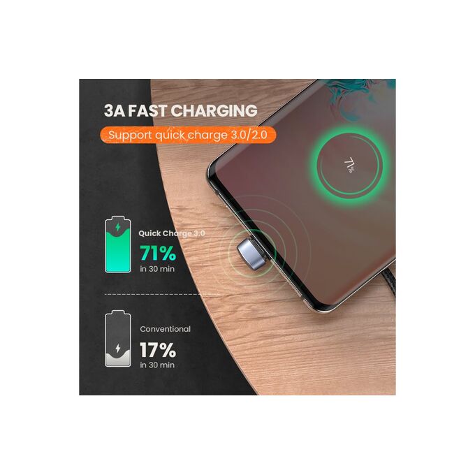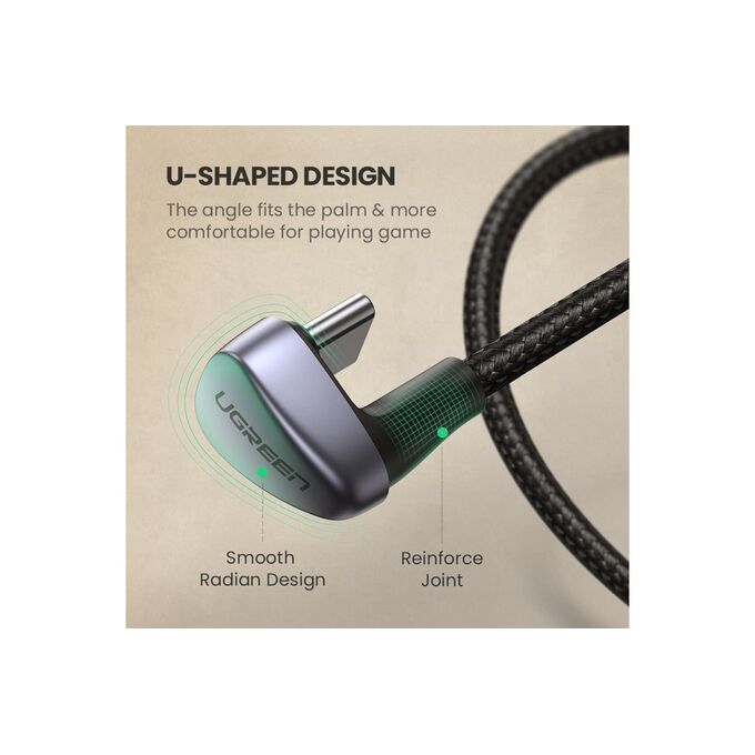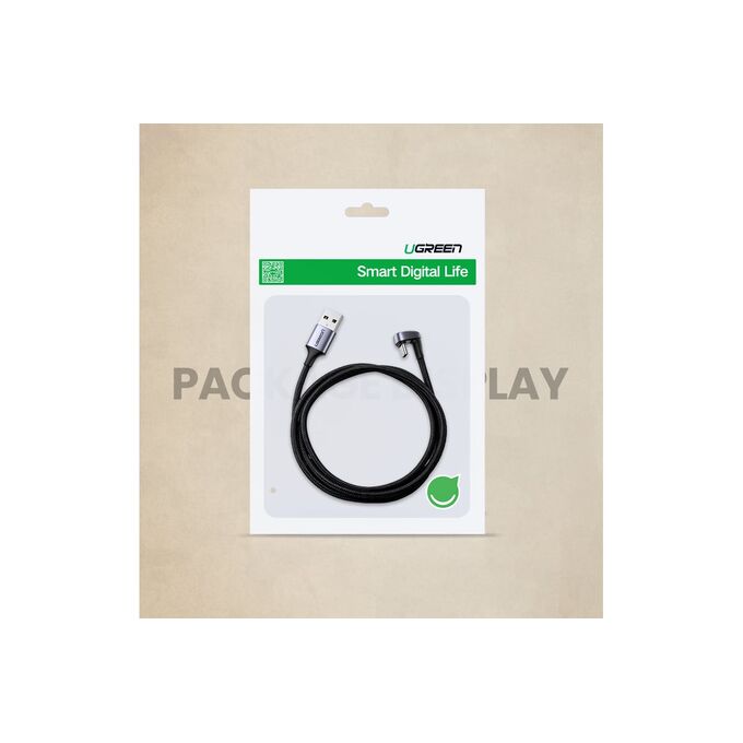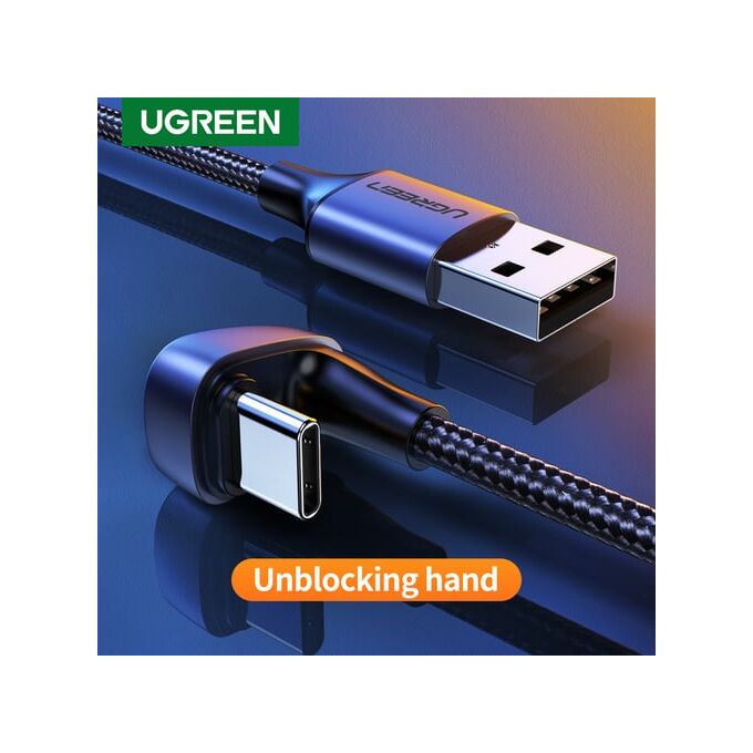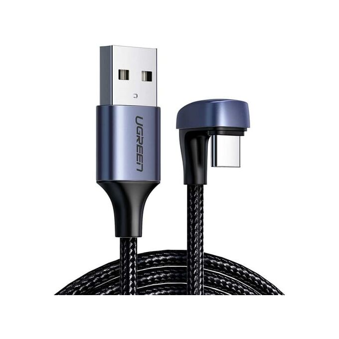 Кабель UGREEN US311 70315 USB2.0-A to Angled USB-C Cable Aluminum Case with Braided 2m Black