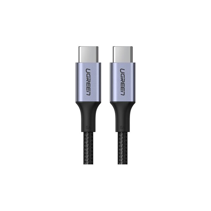 Кабель UGREEN US316 (15799P) 100W USB-C to USB-C PD Fast Charging Braided Cable 5A Max 0.25m 2pcs Gray