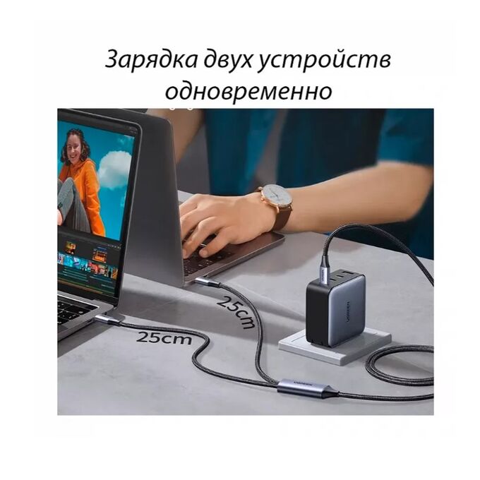 Максимальная мощность 100 Вт: быстрая зарядка ноутбуков или смартфонов с разъемом USB-C при максимальном напряжении 20 В и силе тока 5 А, поддержка быстрой зарядки Power Delivery PD мощностью 100 Вт, 60 Вт, 45 Вт, 30 Вт, 18 Вт.