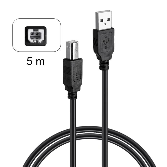 Кабель USB 2.0 для принтера , 5 метров (Black)