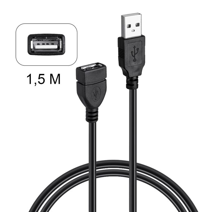 Кабель USB 2.0 удлинитель 1.5M (Black)