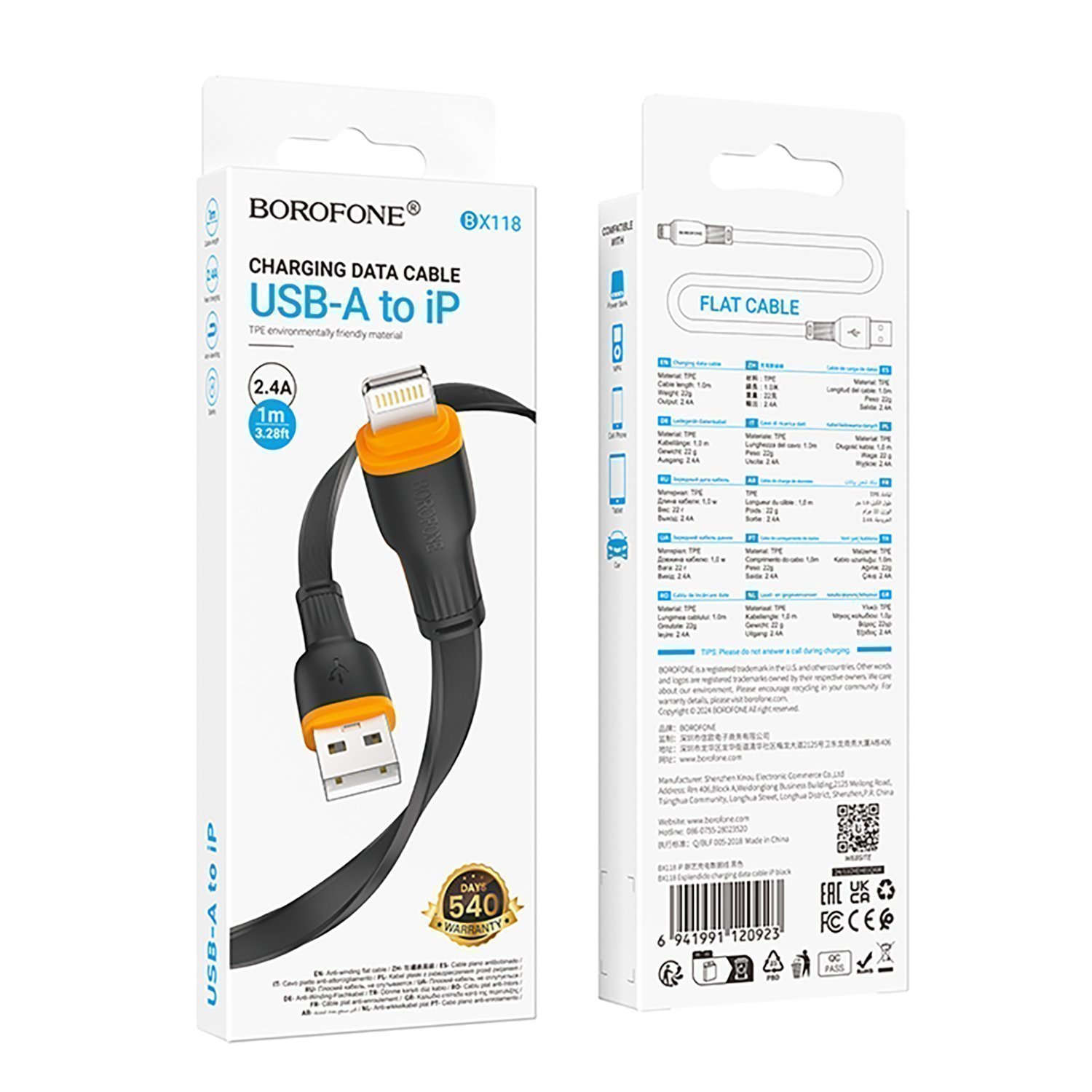 Кабель USB - Apple lightning Borofone BX118 Esplendido 12W 100см 2,4A (black) (242858)