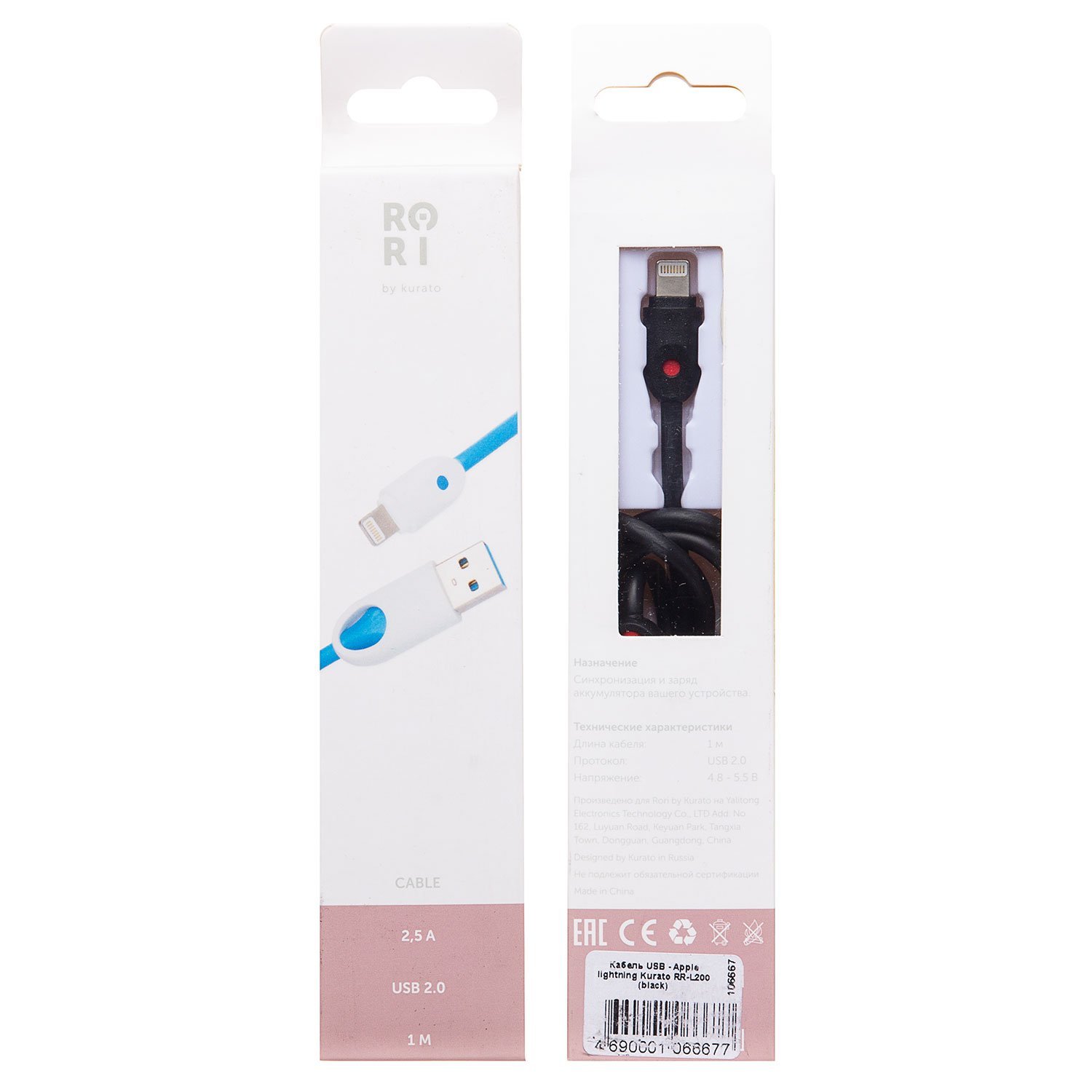 Кабель USB - Apple lightning Kurato RORI-L200 100см 2,5A (black) (106667)