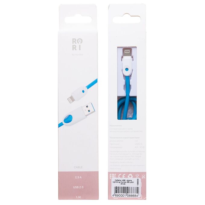 Кабель USB - Apple lightning Kurato RORI-L200 100см 2,5A (blue) (106668)