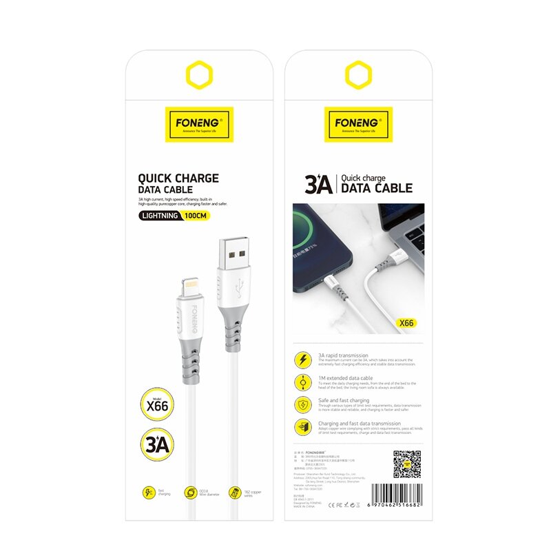 Кабель USB - Lightning Foneng X66 1M, 3A (White)