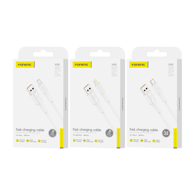 Кабель USB - Lightning Foneng XS01 1M, 2.4A (White)