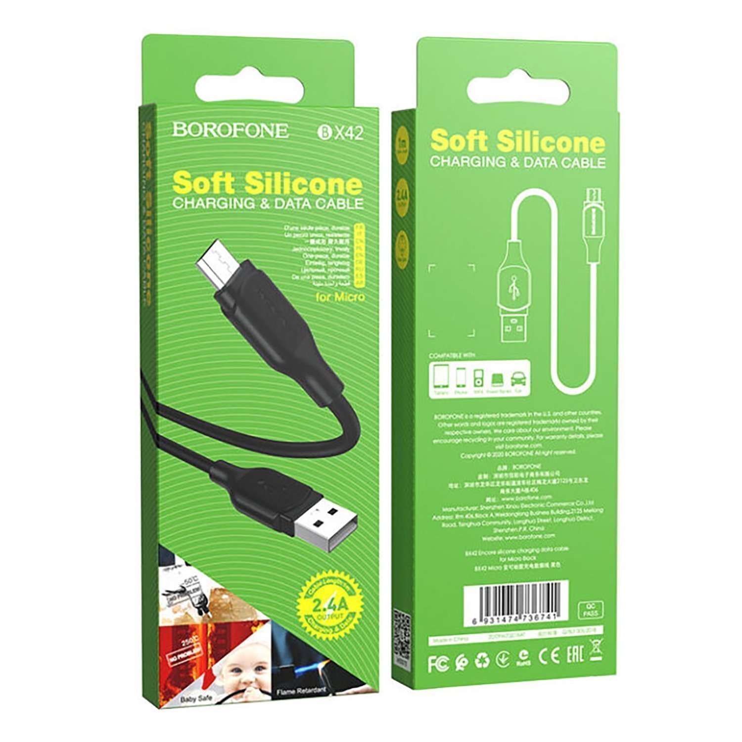 Кабель USB - micro USB Borofone BX42 Encore silicone 15W 100см 3A (black) (207867)