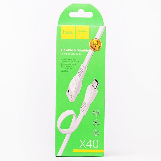 Кабель USB - micro USB Hoco X40 Noah Charging 100см 2,4A (white) (113640)