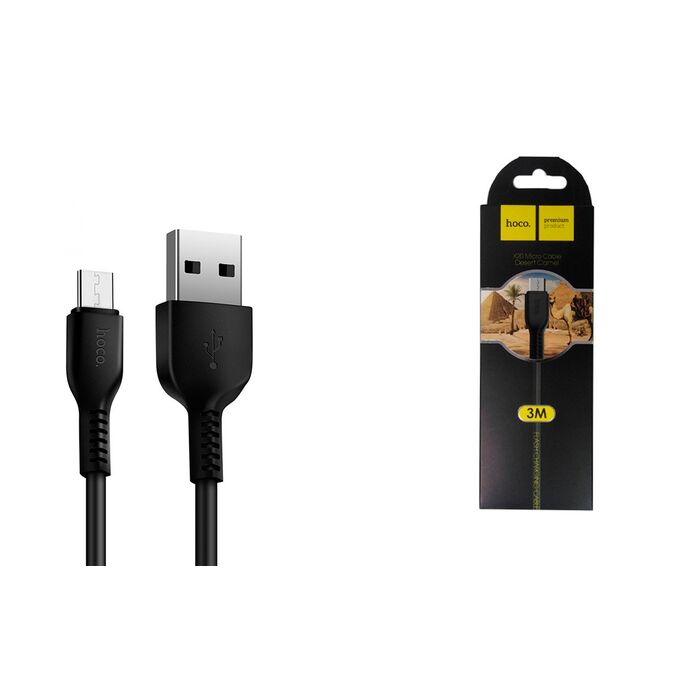 Кабель USB - микро USB HOCO X20, 3.0м, круглый, 2.1A, силикон, цвет: чёрный (1/30/300)