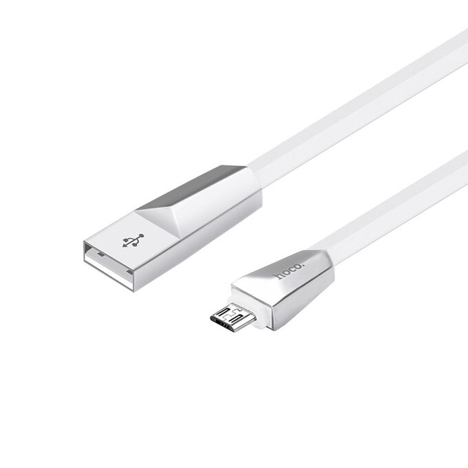 Кабель USB - микро USB HOCO X4 Zinc Alloy Rhombus, 1.2м, плоский, 2.1A, силикон, цвет: белый (1/32/320)