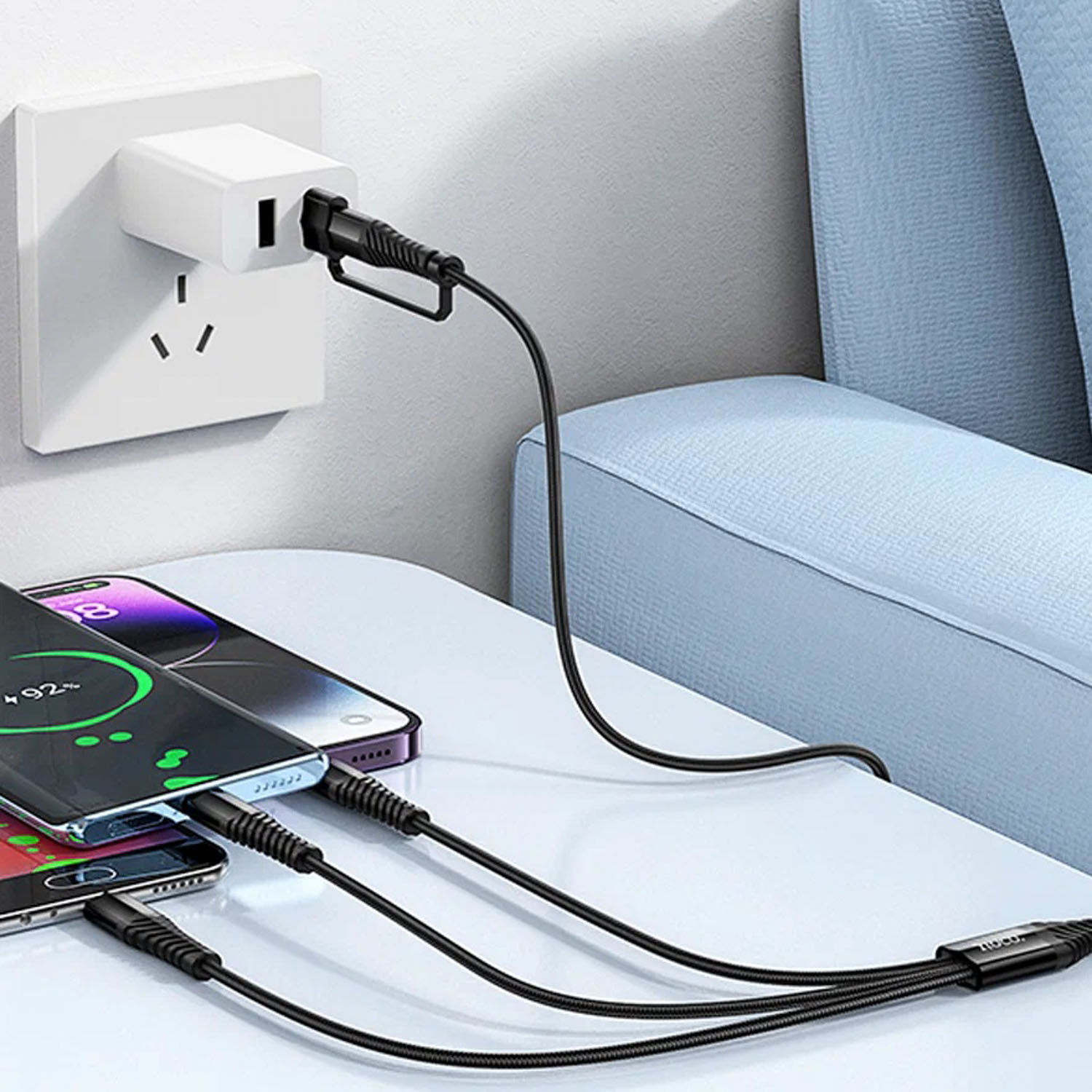 Кабель USB - Multi connector Hoco X123 3в1(USB/C to iP+C+Micro) 18W 100см 3A (black) (243031)