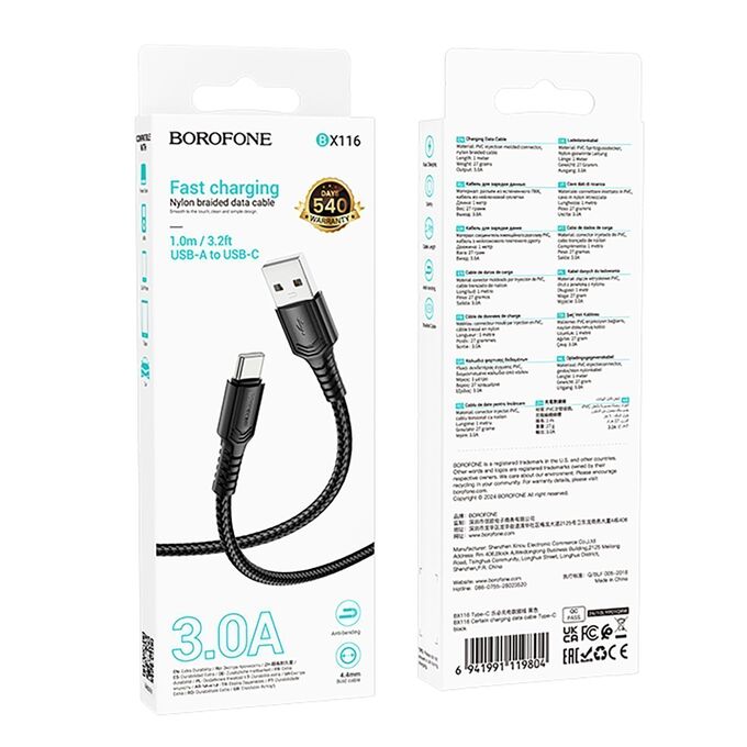 Кабель USB - Type-C Borofone BX116 Certain 18W 100см 3A (black) (240333)