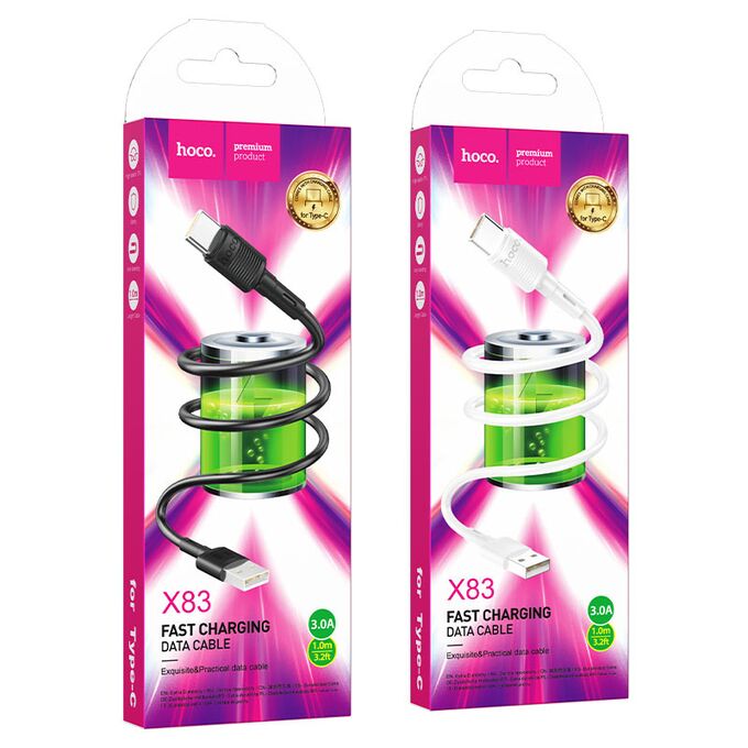 Кабель USB - Type-C HOCO X83 Victory, 1.0м, 3.0A, цвет: чёрный (1/33/330)