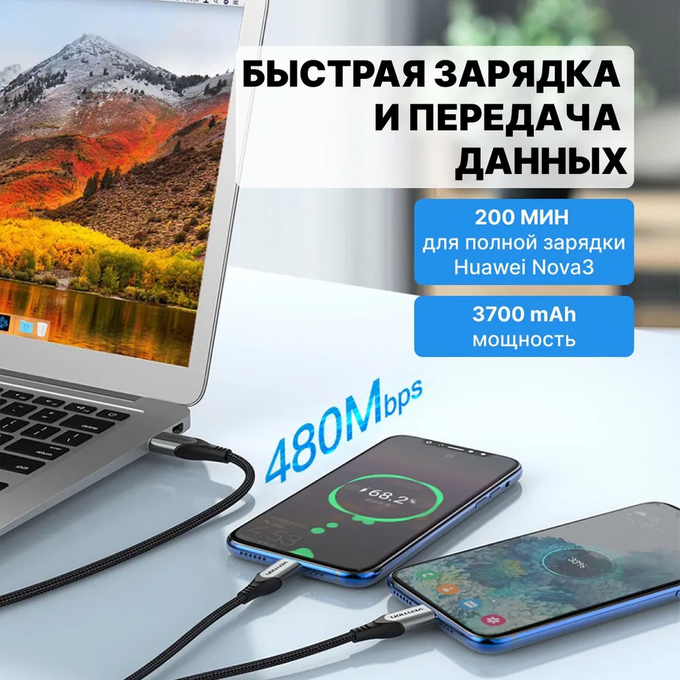Кабель Vention CQOHF USB-CM х 2/USB 2.0 AM 1м