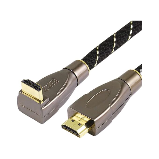 Кабель Wize WAVC-HDMIRA-5M HDMI v.2.0b 19M/19M 4K/60 Hz 4:4:4 26 AWG HDCP 1.4 HDCP 2.2 Ethernet 5м черный позол.угловой разъем экран пакет