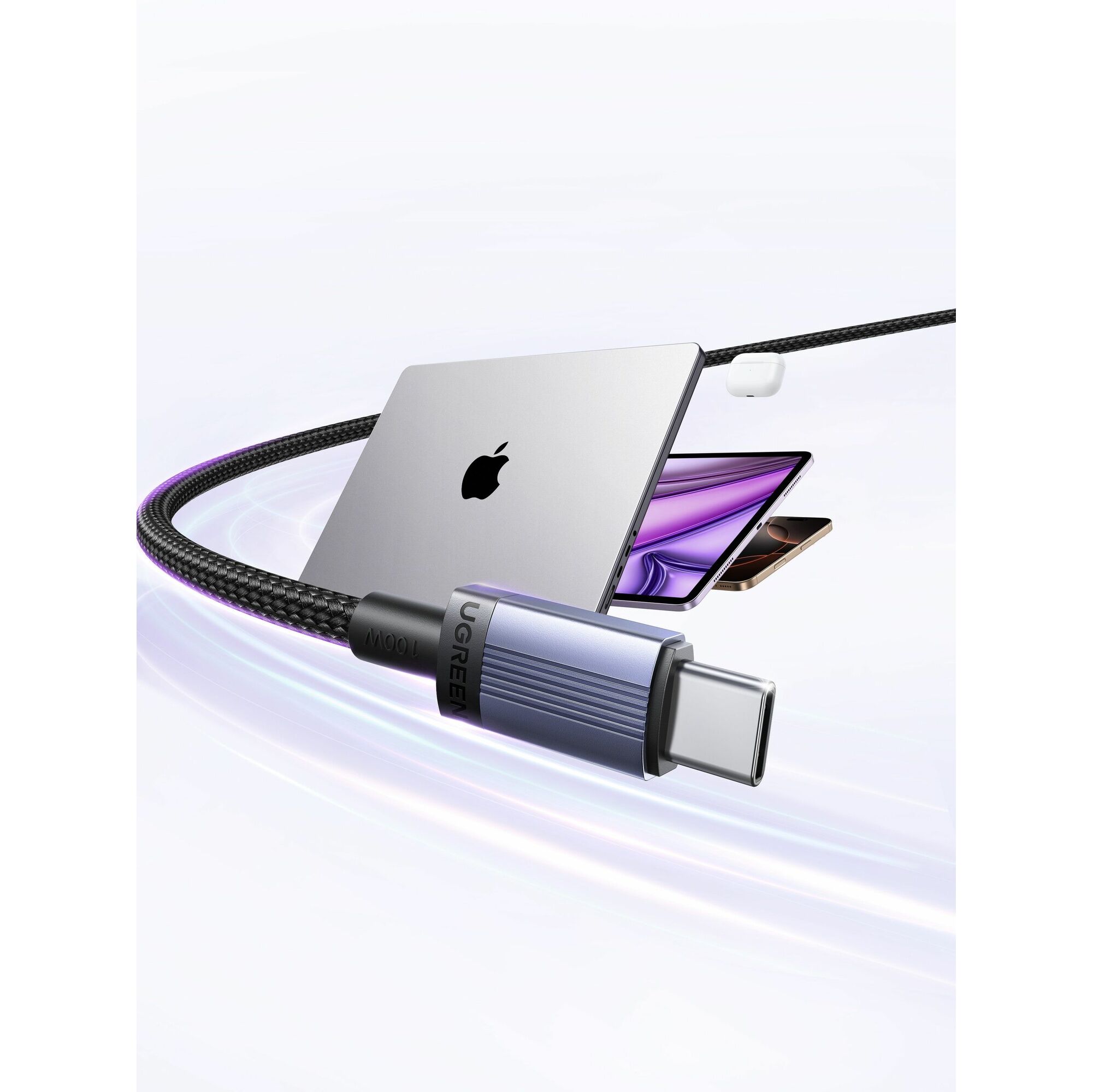 Ugreen L528 — премиальный USB‑C на USB‑C кабель длиной 3 метра цвета Space Gray с алюминиевыми коннекторами и прочной нейлоновой оплёткой.