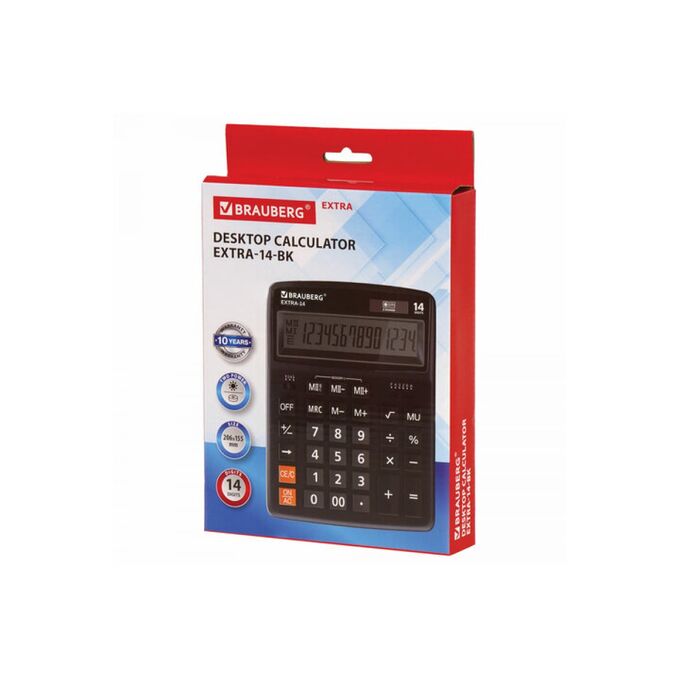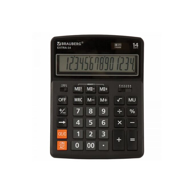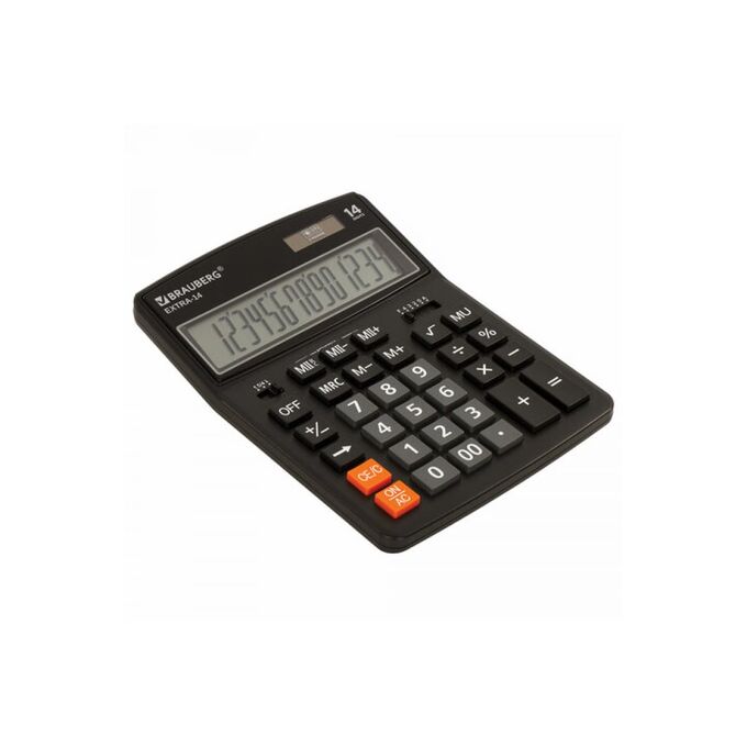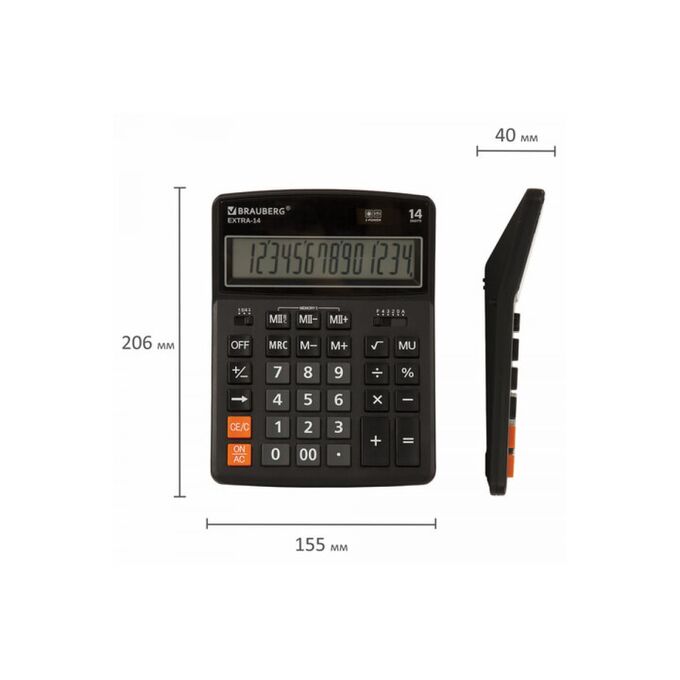 Настольный калькулятор BRAUBERG EXTRA-14-BK 206x155 мм, 14 разрядов, двойное питание, черный 250474 предназначен для совершения различных вычислений.