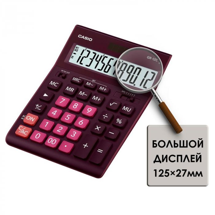 Калькулятор настольный Casio GR-12C-WR бордовый