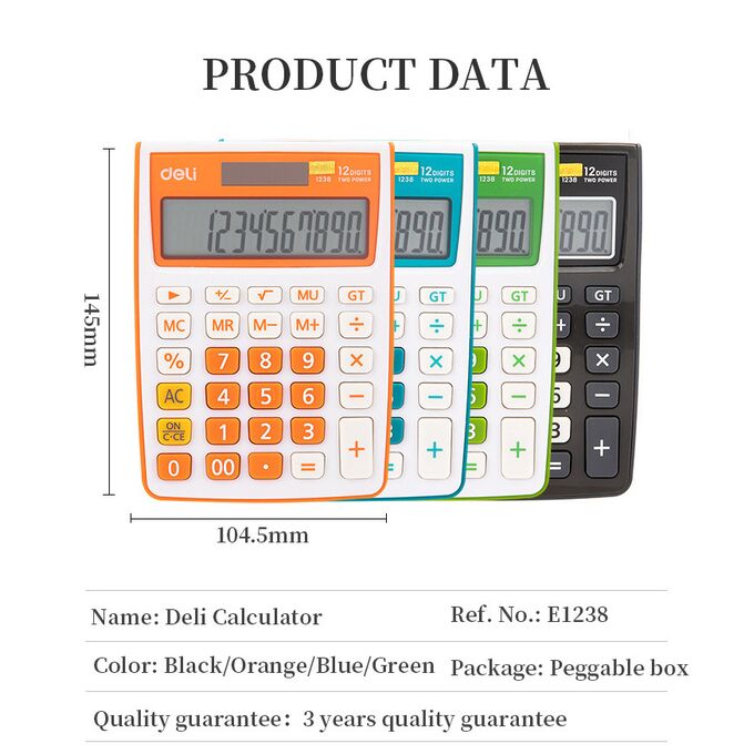 Калькулятор настольный Deli E1238/Blue синий