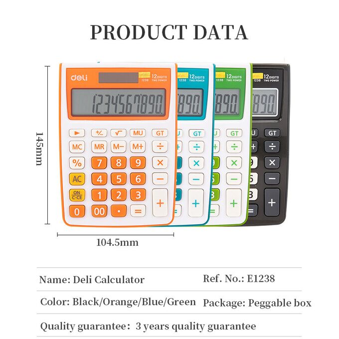 Калькулятор настольный Deli E1238/OR оранжевый