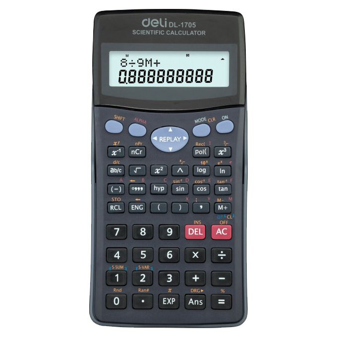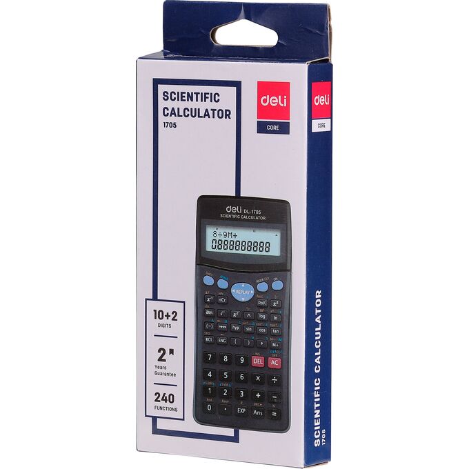 Калькулятор научный Deli в жестком пластиковом футляре. Разработан для проведения различных по сложности инженерных и научных расчетов. Практичная выдвижная крышка защищает калькулятор от грязи и случайного включения. Функционал калькулятора – 240 функций из основных разделов математики: арифметика, алгебра, тригонометрия, статистика и теория вероятностей.