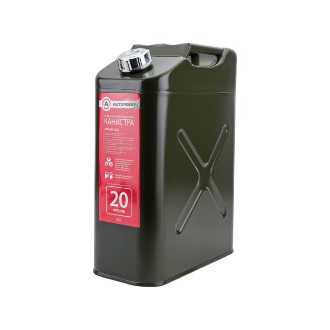 Канистра стальная AUTOPROFI KAN-300 20L, вертикальная, оцинкованная, горловина с навинчив. крышкой, перепускной клапан, лейка, 20 литров, 1 4