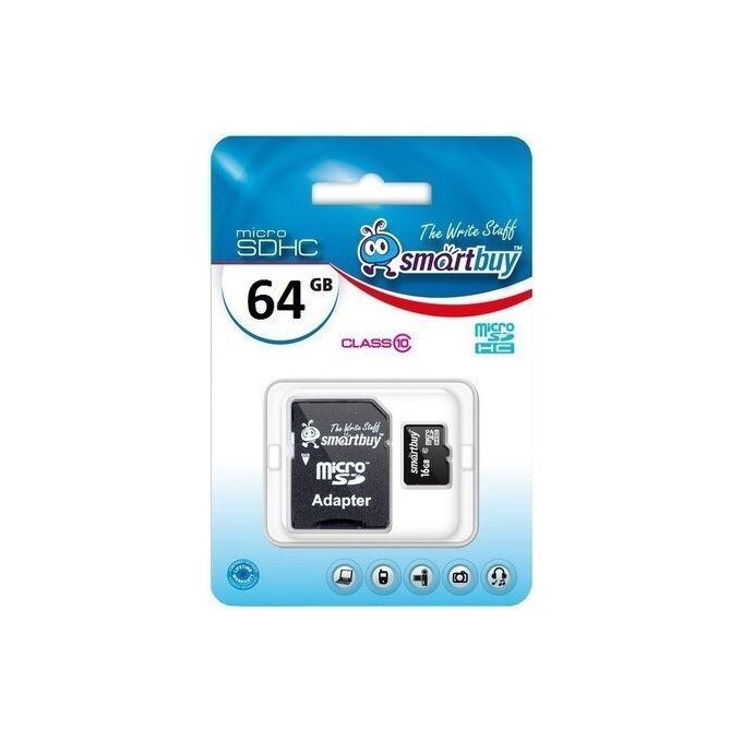 Карта флэш-памяти MicroSD 64 Гб Smart Buy +SD адаптер (class 10) (32291)
