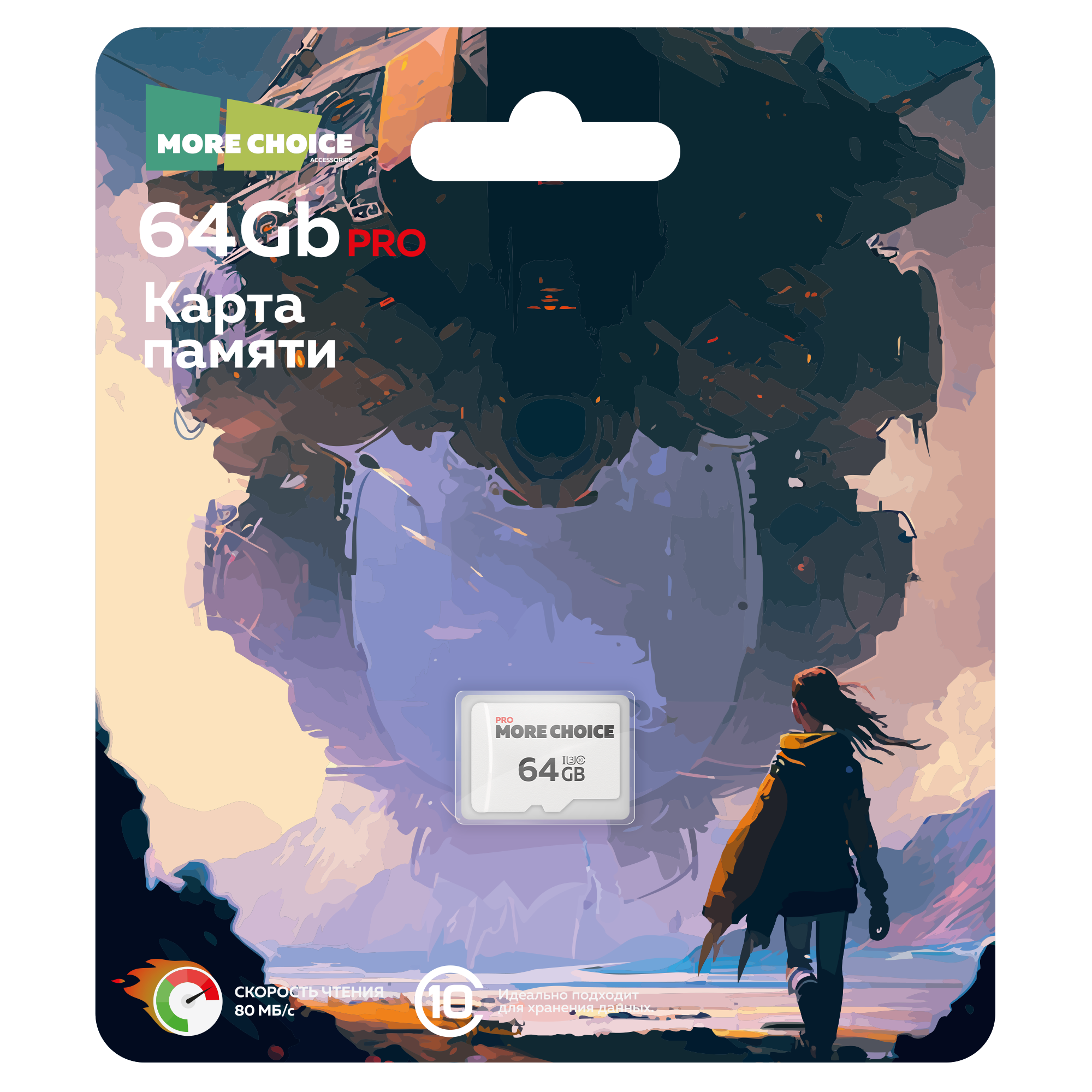 Карта памяти 64Gb Micro-SD More choice Class10 V30 MC64-V30 (Black White)