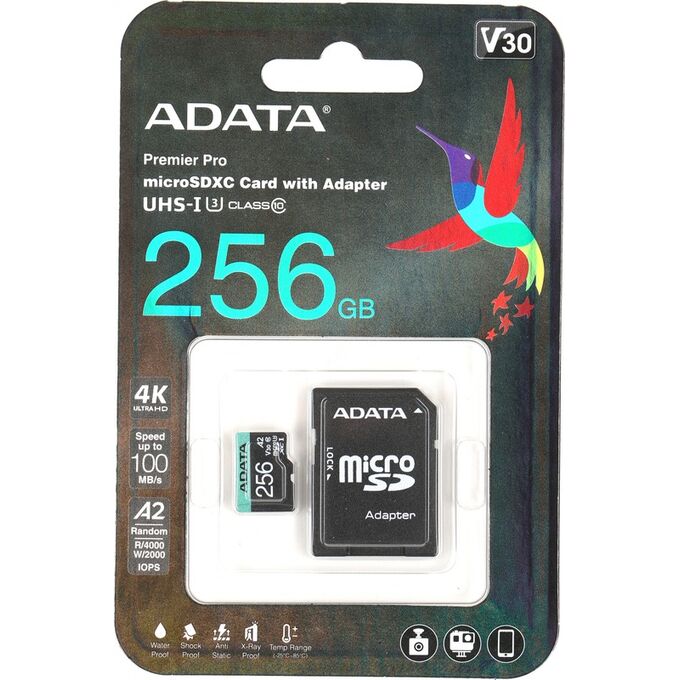 Карта памяти A-DATA UD256GUI3V30A2SP-RA1 256GB microSDXC Class 10 UHS-I U3 V30 A2 180/160 MB/s (SD адаптер)