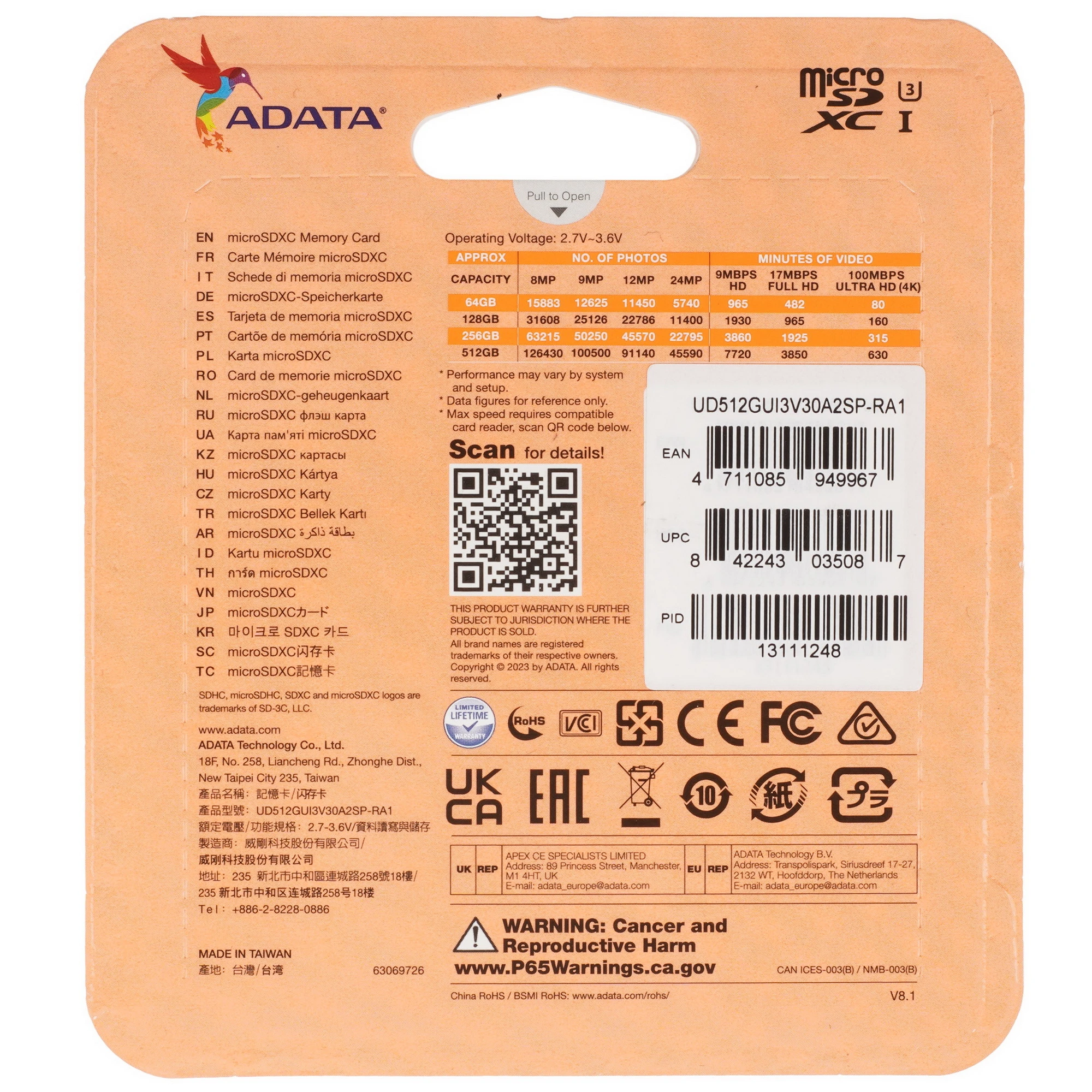 Карта памяти Adata SPEED PLUS SDXC [UD512GUI3V30A2SP-RA1] типа SDXC позволяет записывать и хранить данные общим объемом 512 ГБ. Классы A2, Class 10, UHS Class 3 и Video Class 30 обеспечивают запись со скоростью 160 Мбайт/сек и чтение с максимальной скоростью 180 Мбайт/сек.