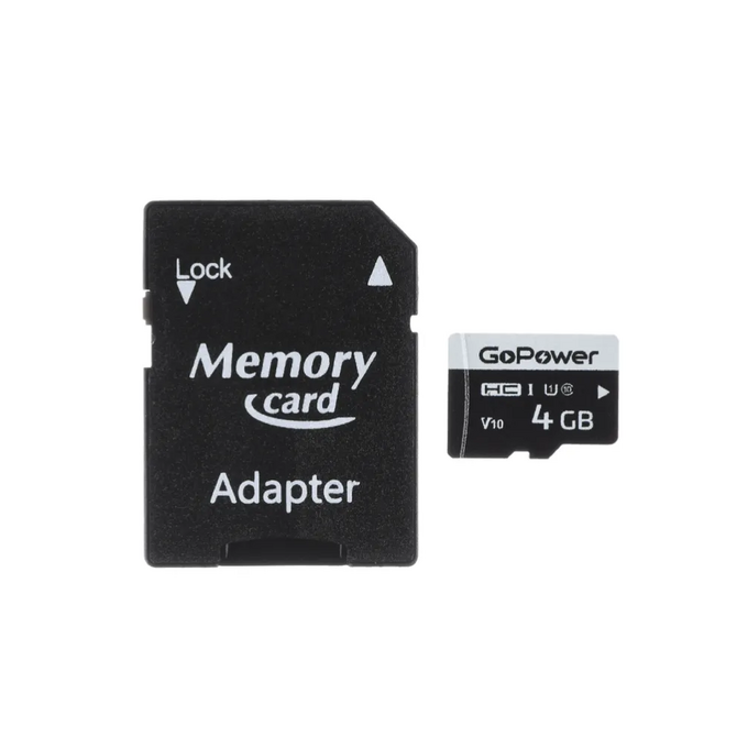 Карта памяти microSD GoPower 4GB Class10 15 МБ/сек V10 с адаптером