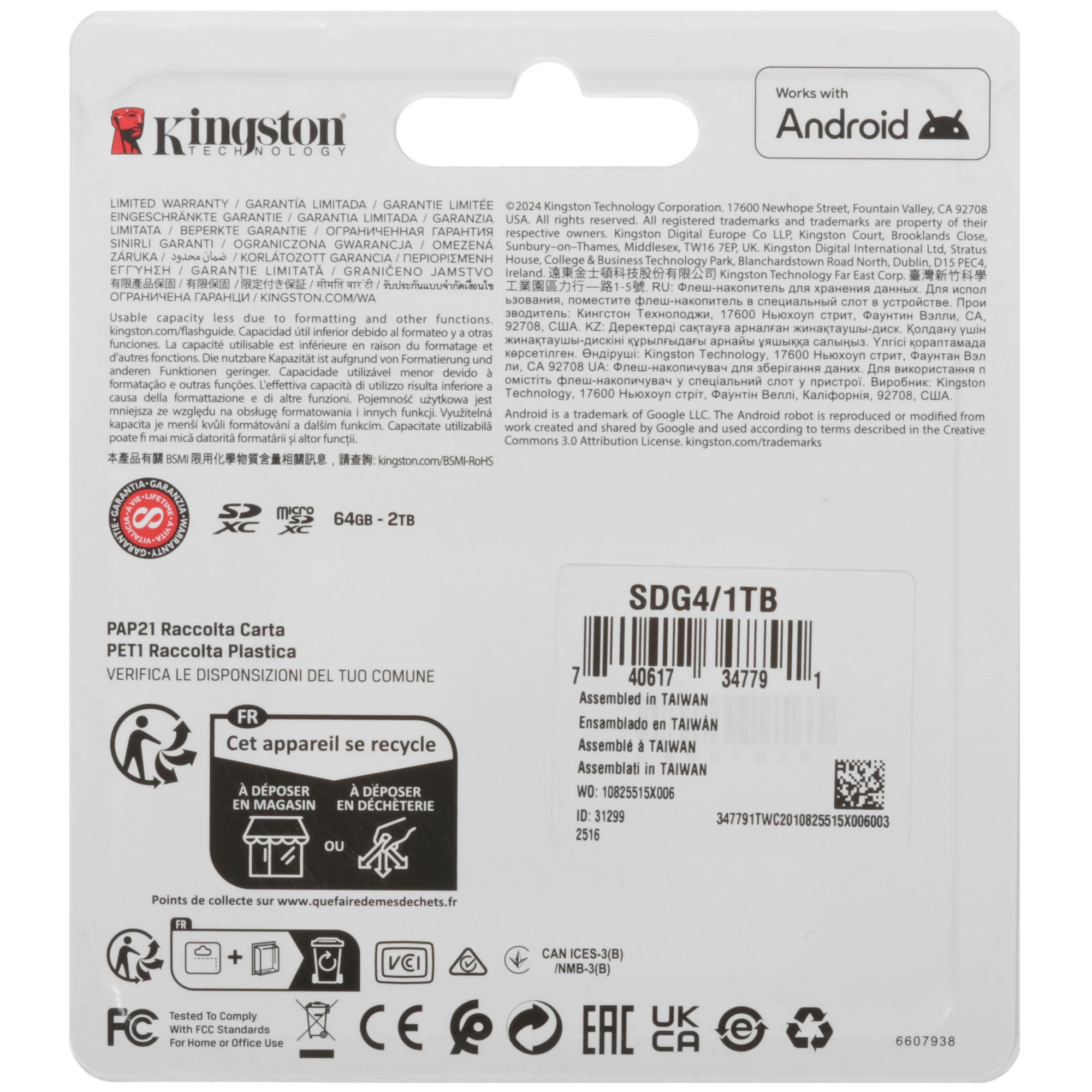 Карта памяти Kingston SDXC 1000 ГБ [SDG4/1TB] пригодится владельцам фотокамер и других устройств. Модель соответствует классам скорости Class 10, UHS Class 3 и Video Class 30.