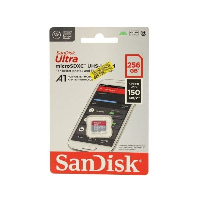 Карта памяти microSDXC SanDisk Ultra SDSQUAC-256G-GN6MN 256GB Class 10, UHS-I, R 150 МБ/с, без адаптера SD
