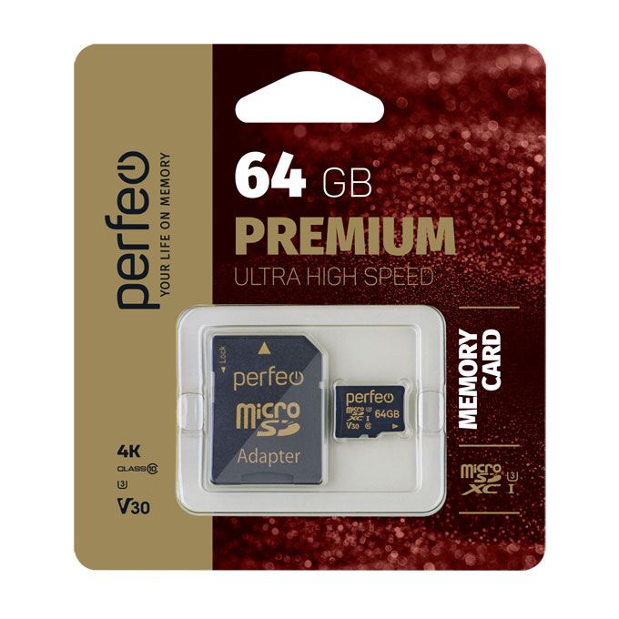 Карта памяти Perfeo PF64GMCSX10V30A microSDXC 64GB High-Capacity (Class 10) UHS-1 V30