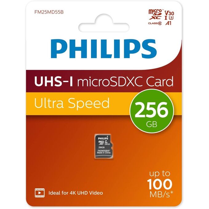 Карта памяти PHILIPS FM25MD55B/97 256GB High Speed microSDHC Class UHS-I U3, V30, A1, 100MB/s