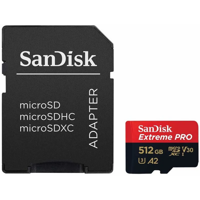 Карта памяти SanDisk (SDSQXCD-512G-GN6MA) 512GB microSDXC Class 10 UHS-I A2 C10 V30 U3 Extreme Pro (SD адаптер) 200MB/s