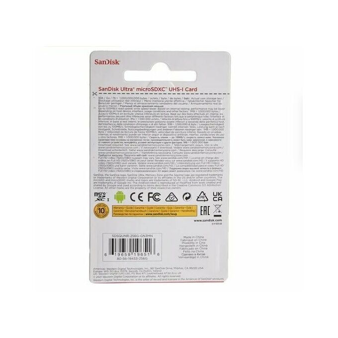 Карта памяти SANDISK UHS-I SDSQUNR-256G-GN3MN Micro SDXC 256GB
