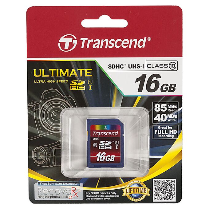 Карта памяти SDHC Transcend Ultimate, 16 Гб, UHS-I Class 10 U1, чтение: до 90Мб/с