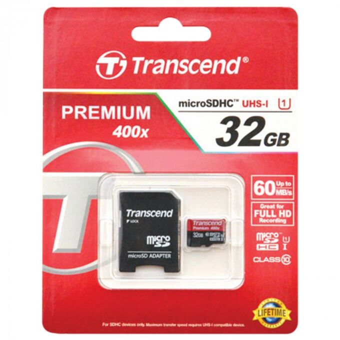 Карта памяти Transcend TS32GUSDU1 micro SDHC Premium 32GB UHS-I Class 10 U1 с адаптером