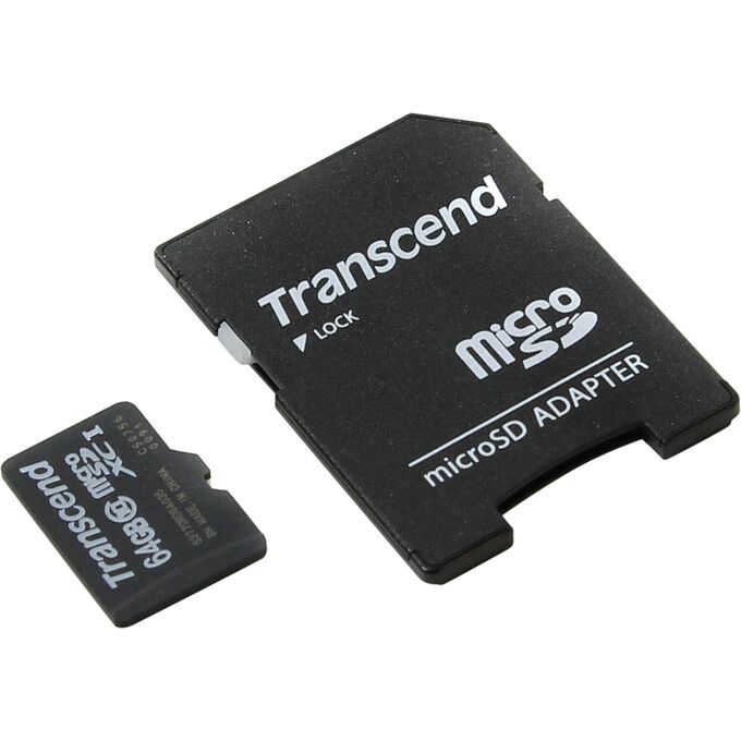 Карта памяти microSDXC Transcend, 64 Гб, UHS-I Class U1, чтение: до 45Мб/с, с адаптером