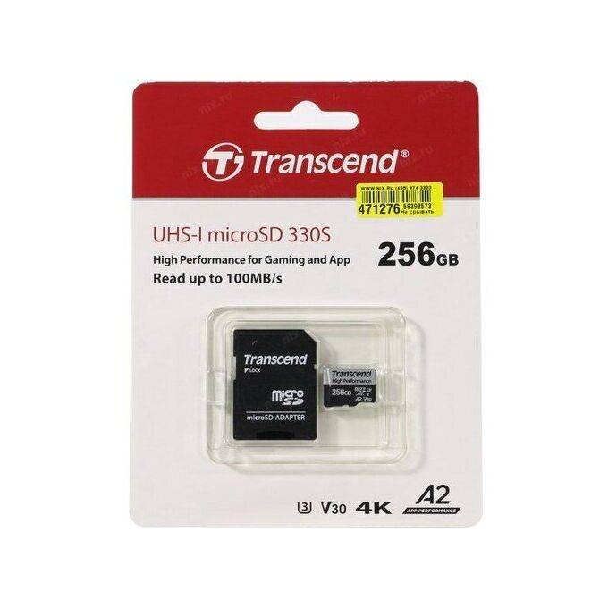 Карта памяти Transcend Ultra Perfomrance (TS256GUSD340S) 256GB microSDXC Class 10 UHS-I U3, V30, A2, (SD адаптер), TLC