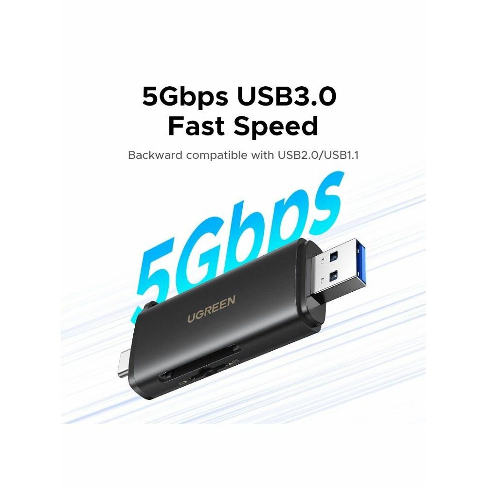 Картридер на два слота UGREEN CM803 (65024) 2-in-1 USB-C - USB-A SD Card Reader черный