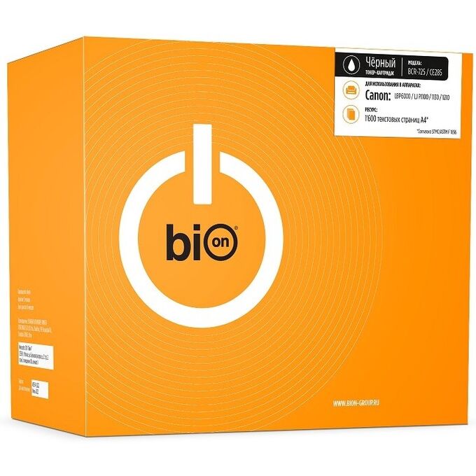 Картридж Bion BCR-725/CE285 для HP LJ Pro P1102/1214nfh/M1132/M1212nf MFP/M1217nfw MFP;LaserJet Pro M1218nfs;Canon imageCLASS MF3010 MFP;i-SENSYS LBP
