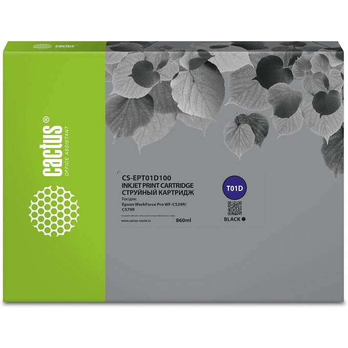 Картридж Cactus T01D1 (CS-EPT01D100) струйный черный для Epson WorkForce Pro WF-C529R/C529RDTW/C529RDTW EPP