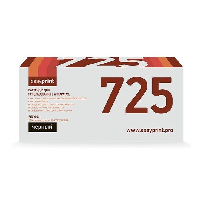 Картридж Easyprint 725/CB435A/CB436A/CE285A (LC-725 U) универсальный для Canon LBP3010/6000/HP LJ P1005/P1505/P1102/M1120/M1212/M1522 (2000 стр.)