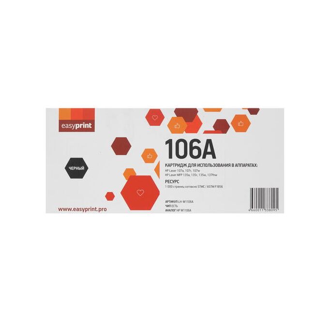 Картридж Easyprint W1106AL картридж для HP Laser 107a/107r/107w/MFP 135a/135r/135w/137fnw (2500 стр) черный, с чипом