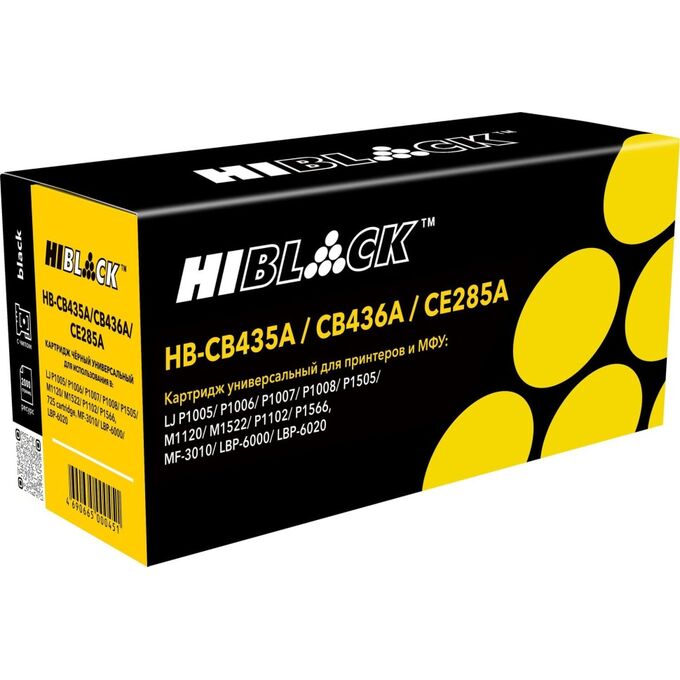Картридж Hi-Black725/CB435A/CB436A/CE285A Универсальный HB-CB435A/CB436A/CE285A для HP LJ P1005/P1505/P1120W/Canon LBP6000/6000В, ресурс 2000 стр .