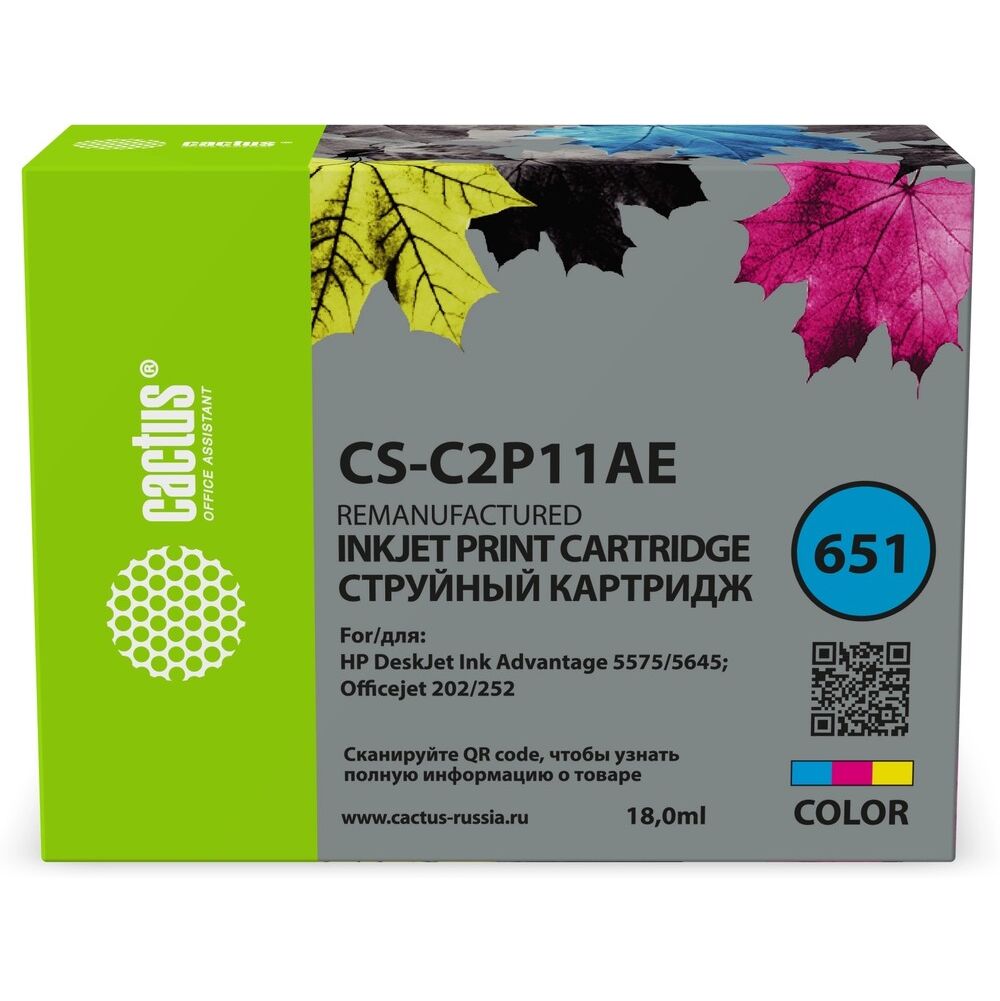 Картридж струйный Cactus CS-C2P11AE № 651 многоцветный (18мл) для HP 5575/5645 OJ 202/252