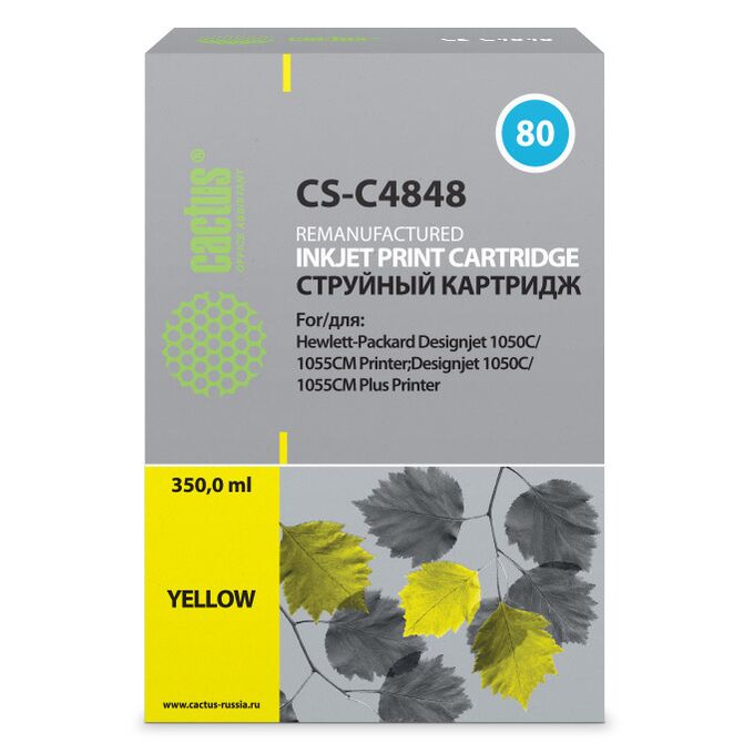 Картридж струйный Cactus CS-C4848 №80 желтый 400мл для HP DJ 1050C/1055CM/1000