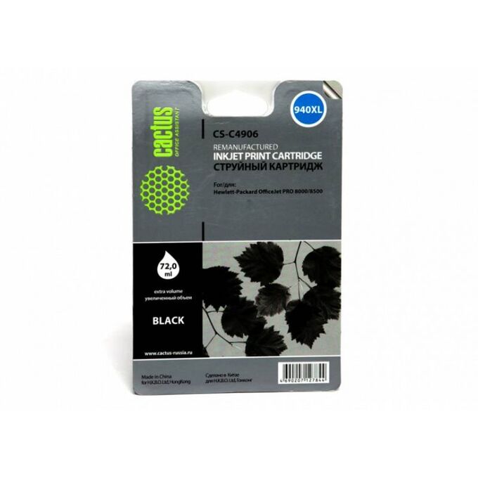 Картридж струйный Cactus CS-C4906 черный для №940 HP OfficeJet PRO 8000/8500 (72ml)
